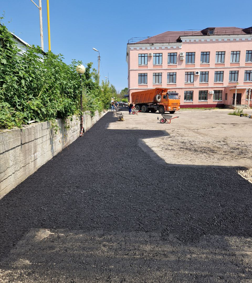 выполнение работ по благоустройству территории, включая восстановление асфальтового покрытия;